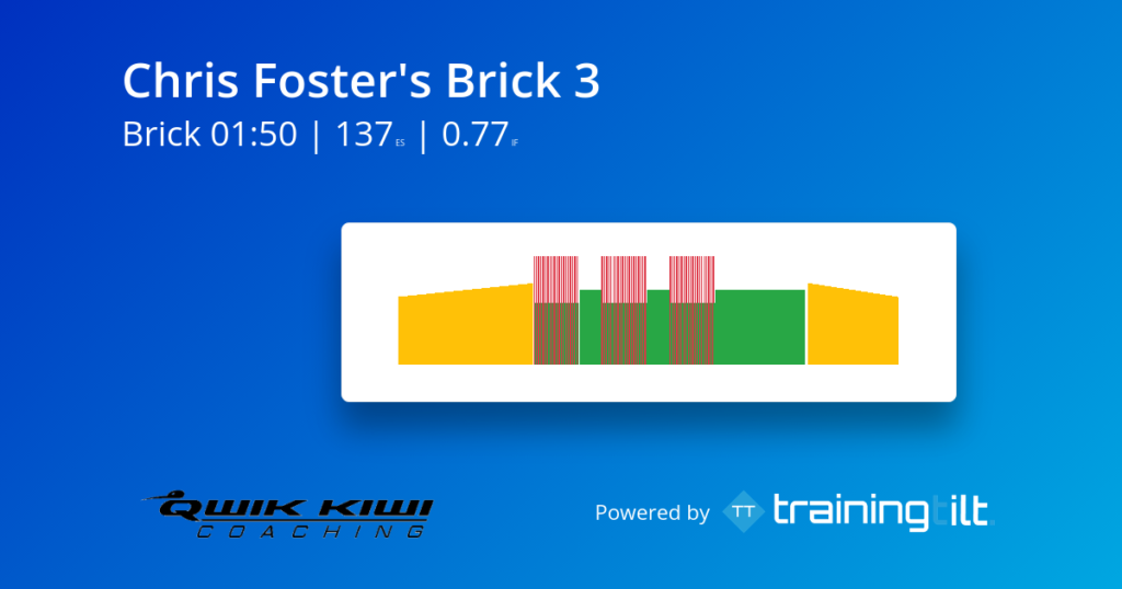 Brick sessions are a great training session to help develop the neuromuscular system to prepare you for future events (as well as future training sessions). Not only that but you will get a great physiological training stimulus. This workout develops your bike neuromuscular power, combined with an aerobic run and it is perfect to build your off season fitness for sprint and Olympic Distance Triathlons.