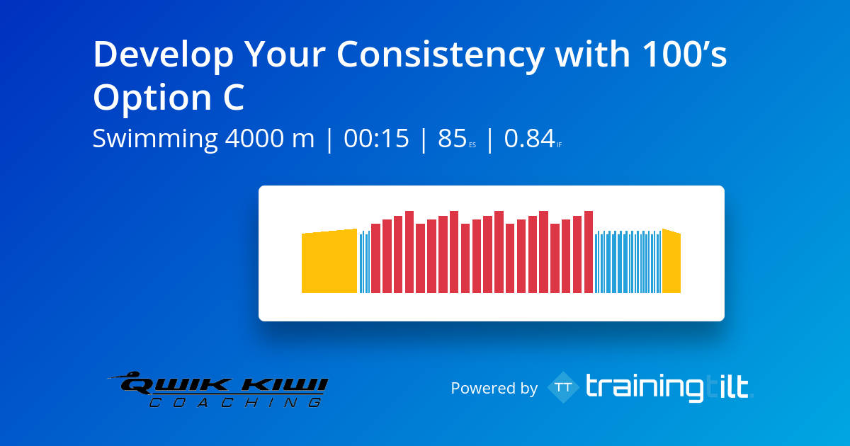 100s are a great distance to improve your speed and if you repeat them enough you will also enhance your endurance and stamina. This workout is perfect for Ironman and Olympic distance triathletes or people doing longer ocean swims.