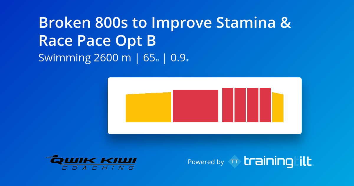 The Main Set is made up of a Broken 800. There are two parts to this Broken 800. The first part is swimming 800m as fast as you can. Try to keep this section nice and consistent. Once you’ve completed the 800m take a 60-second Rest Interval (RI) and then commence the second part which is made up of four 200m reps with a short 20-second Rest Interval (RI) between each rep.