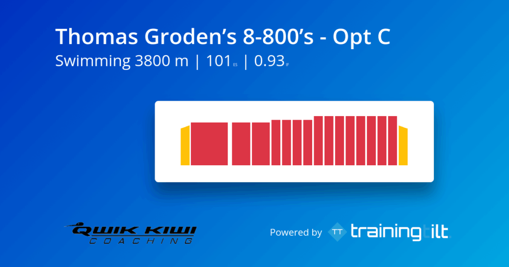 The inspiration for these sessions came from the former head coach of Boston College Swimming – Thomas Groden in an article by Olivier Poirier-Leroy read it here. The session has been adapted to fit the purpose of these articles, as it is 7,400yds total.