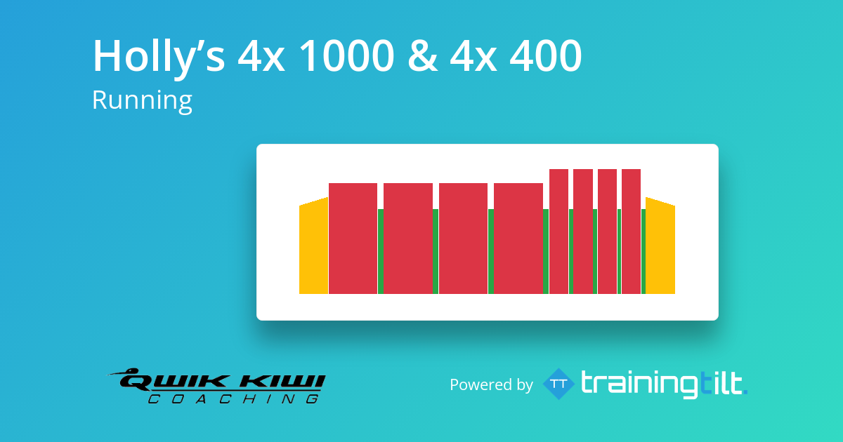 The first set is made of four reps of 1,000m at Level IV, take a two-minute walking Rest Interval (RI) at Level I between reps.