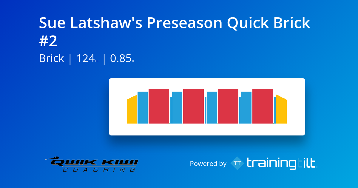 A brick session is a great way to develop your body for the rigors of transitioning from one discipline to the next. This session comes from Sue Latshaw, a pro triathlete in the mid-90, and is great for Sprint and Olympic distance triathletes.