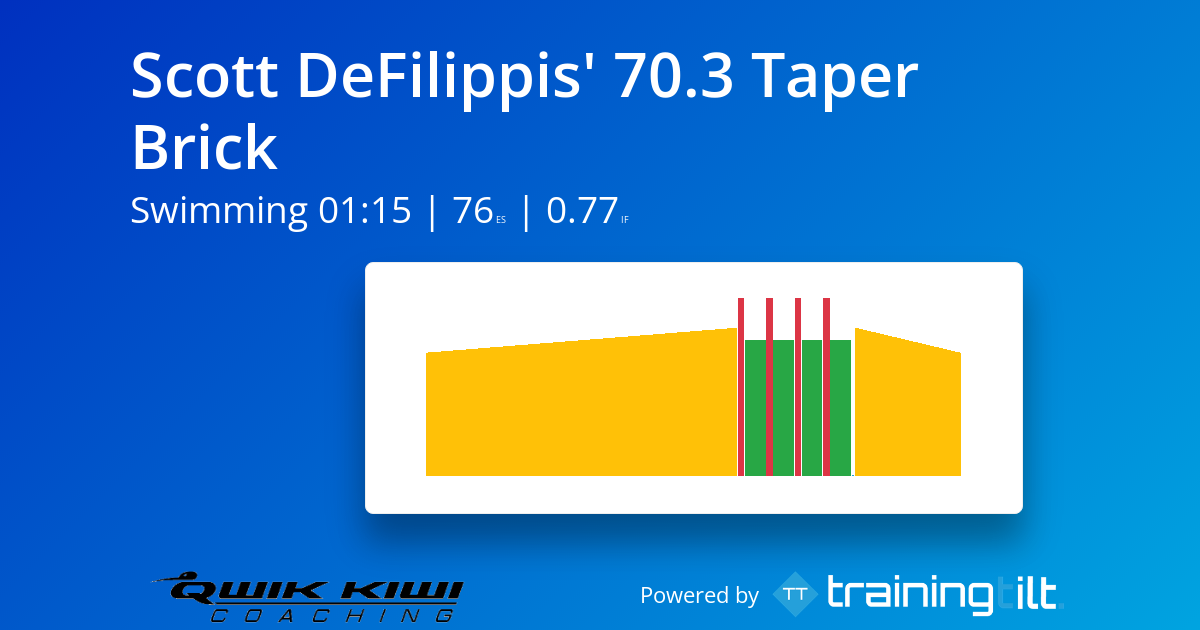 A brick session is a great way to expose your body to the demands of changing from discipline to another. Especially developing the ability for the body to move the blood from the cycling muscles to the running muscles. This brick is great for doing in the final couple of weeks leading into an Ironman 70.3.