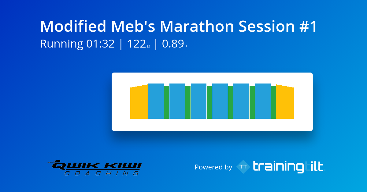 This workout has come from Meb Keflezighi & Scott Douglas’ book Meb For Mortals: How to Run, Think, and Eat like a Champion Marathoner. The modification comes with running for time rather than distance. You can read the original workout here.