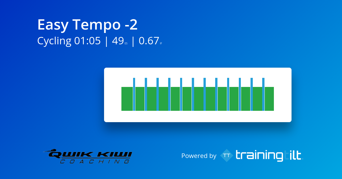 Tempo is the intensity that can be sustained for longer durations. It is the intensity that is used in marathon mountain bike events, Ironman and Ironman 70.3 events. This session gives lots of short exposures to this intensity. This workout is great to include early in a build up, or later in a build up to enhance aerobic efficiency or as a recovery session.