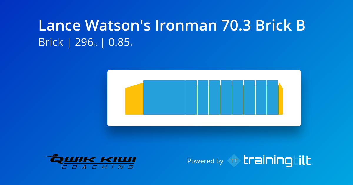 Spending time at race pace or intensity is essential to success on race day. This brick session helps you dial in your race pace ready to perform. This session is perfect for Ironman 70.3 athletes but can also be of benefit for Ironman athletes.