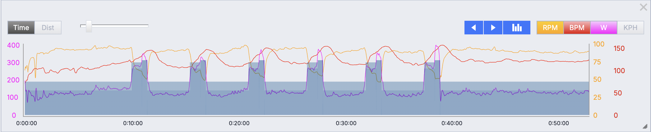 - 6x 90sec Hill Reps Level V (60sec seated 60-70rpm, 30sec shift to higher gear, stand sprint to end), 4min RI Level II;