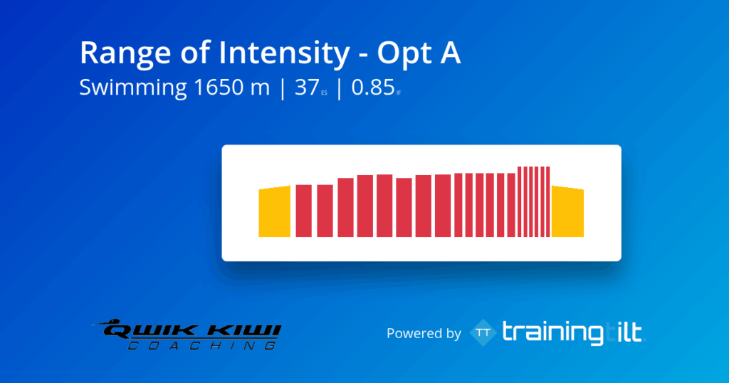 In the swim leg of a triathlon (or open water swim) there is often some variation in swim intensity. The start of the race will often start at a hectic pace, as people try and jostle for a good position or to get to the first turn buoy in a good position before settling into a more sustainable pace. the pace then picks up again towards the end of the swim. This set builds on that top-end speed you have to enhance your overall performance. This session is great for open-water swimmers and triathletes of all distances.