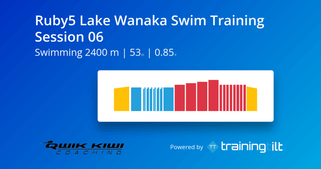 Normally each Saturday I will post a Swim Session, and most weeks I will load three options up for you to do. Option A is for swimmers who are after a workout between 1,000 & 2,000 metres. Option B is for swimmers who are after a workout between 2,000 & 3,000m and Option C will be greater than 3,000m. This series of workouts, the sessions are all targeting athletes looking to swim the Ruby5 swim in Lake Wanaka.