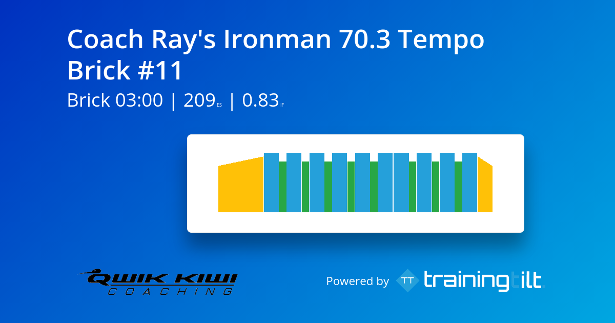 Tempo is an intensity that means different things to different athletes and coaches. For me, I define Tempo as an effort comfortably below the Threshold pace. It is the sort of intensity that is typically maintained during fast Ironman 70.3 events. It is higher than the aerobic effort of long steady workouts, sort of in the mid-zone between the aerobic and threshold efforts. Spending more than 15-20 minutes at this intensity, helps the body practice clearing the small amount of lactic acid generated at this pace, without needing to slow down to do so. This is a perfect session for triathletes competing in Ironman and Ironman 70.3 distance events.