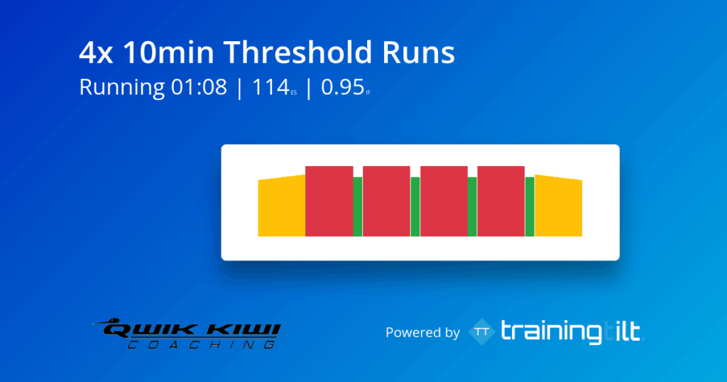 Spending time running at or near your threshold pace will develop your ability to sustain a fast past and also build your tolerance to lactic acid. This session is great for all runners and triathletes. 10km runners will benefit from this style of session as it simulates race effort. Longer distance runners even including ultra-runners will also benefit as your effort will build to this intensity on long sustained climbs.