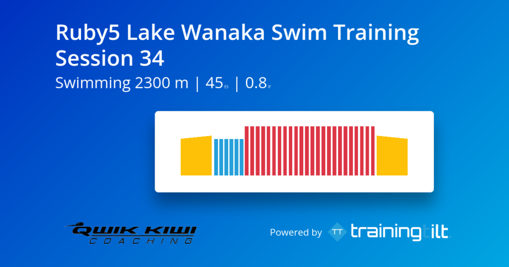 Normally each Saturday I will post a Swim Session, and most weeks I will load three options up for you to do. Option A is for swimmers who are after a workout between 1,000 & 2,000 metres. Option B is for swimmers who are after a workout between 2,000 & 3,000m and Option C will be greater than 3,000m. This series of workouts, the sessions are all targeting athletes looking to swim the Ruby5 swim in Lake Wanaka.