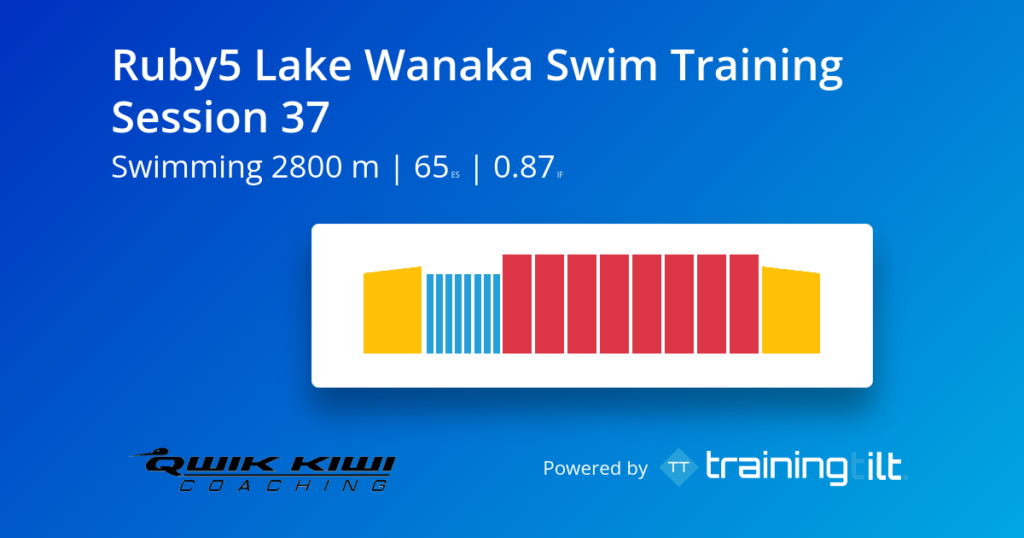 Normally each Saturday I will post a Swim Session, and most weeks I will load three options up for you to do. Option A is for swimmers who are after a workout between 1,000 & 2,000 metres. Option B is for swimmers who are after a workout between 2,000 & 3,000m and Option C will be greater than 3,000m. This series of workouts, the sessions are all targeting athletes looking to swim the Ruby5 swim in Lake Wanaka.