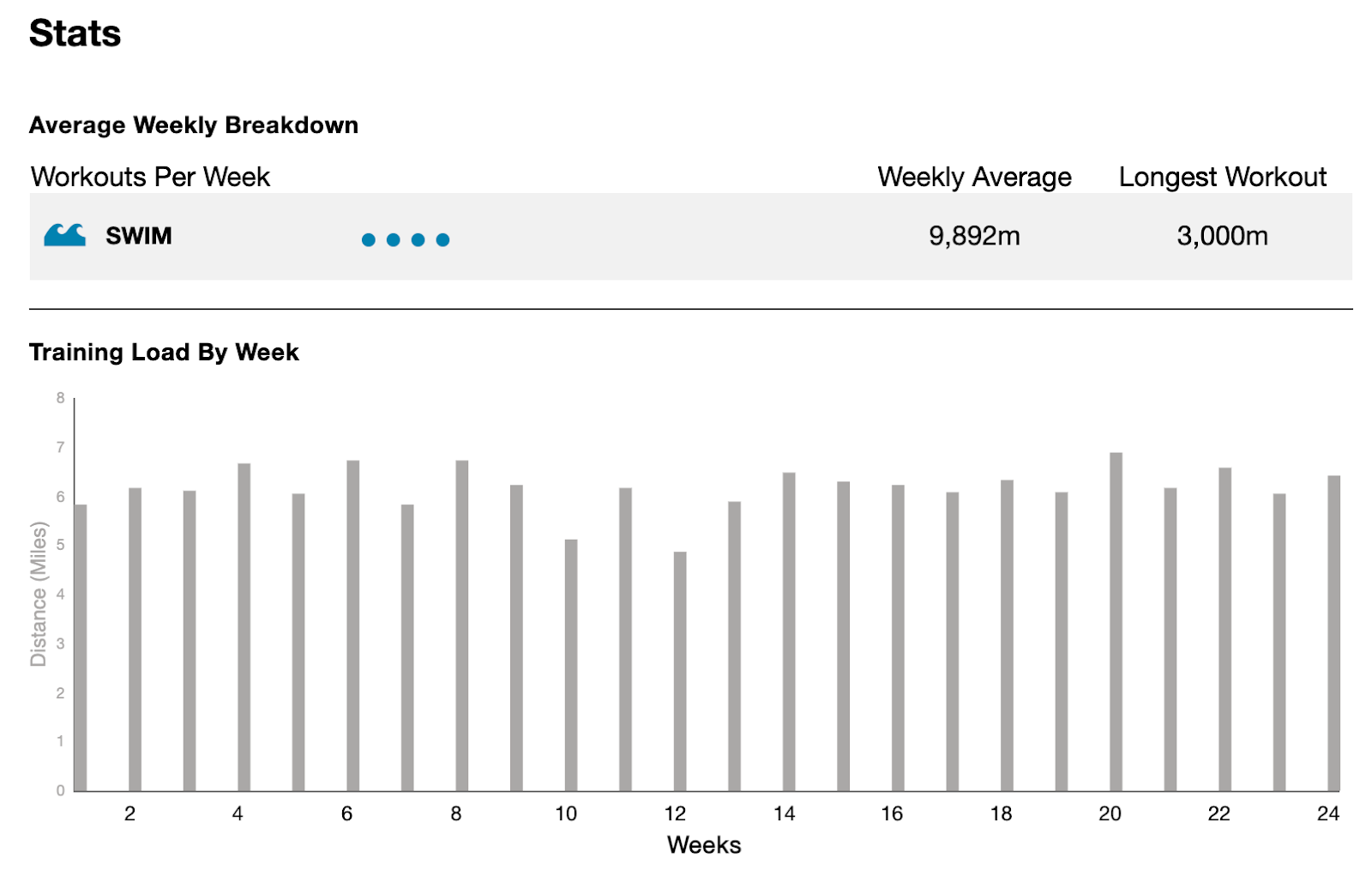 Prior to using this plan, you should be able to swim 1,000 metres or yards continuously, 2,000 metres or yards total within a workout.