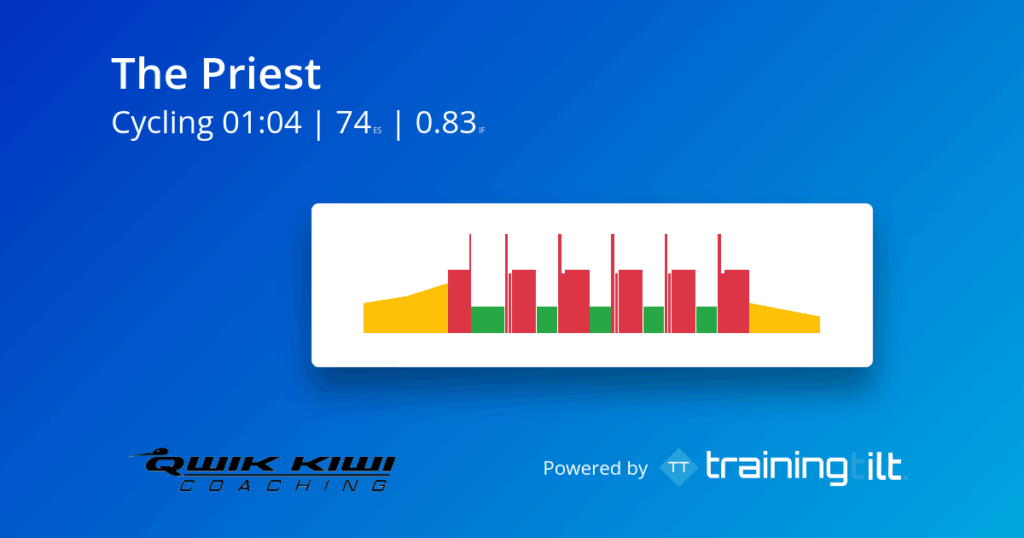 The inspiration for today’s workouts come from various sources. I believe The Priest workout originally comes from TrainerRoad an AI influenced training platform. Although there are many variations of this workout reported around the internet.