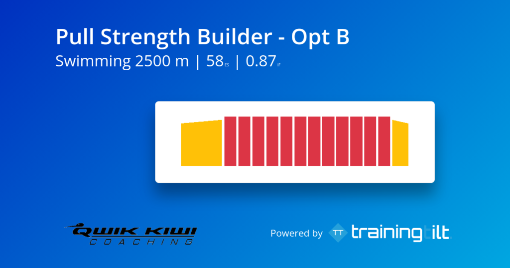 Pull Strength Builder is a simple but effective session designed to improve your strength, durability, and rhythm in the water. By using a pull buoy for the main set, the focus shifts onto your upper-body catch and pull, helping you build the strength needed to hold good form for longer. It is a great session for swimmers and triathletes who want to improve swim-specific strength and develop a more efficient, controlled freestyle stroke.
