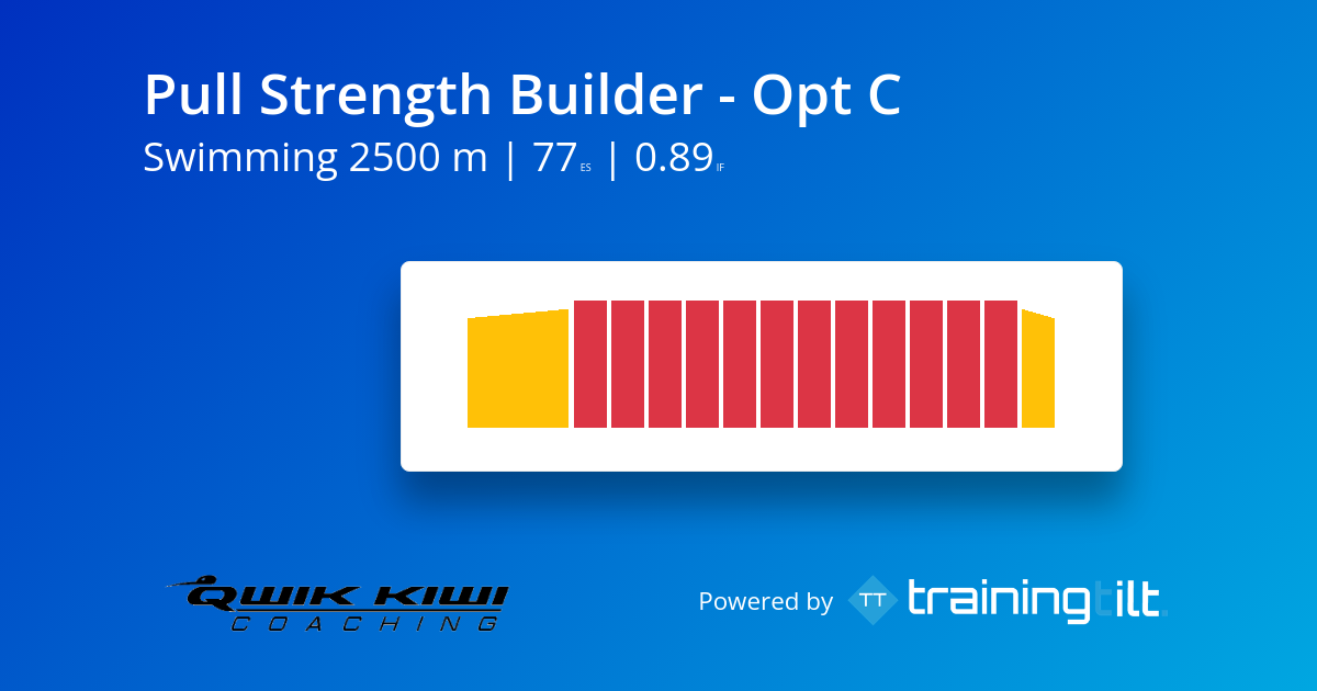 Pull Strength Builder is a simple but effective session designed to improve your strength, durability, and rhythm in the water. By using a pull buoy for the main set, the focus shifts onto your upper-body catch and pull, helping you build the strength needed to hold good form for longer. It is a great session for swimmers and triathletes who want to improve swim-specific strength and develop a more efficient, controlled freestyle stroke.