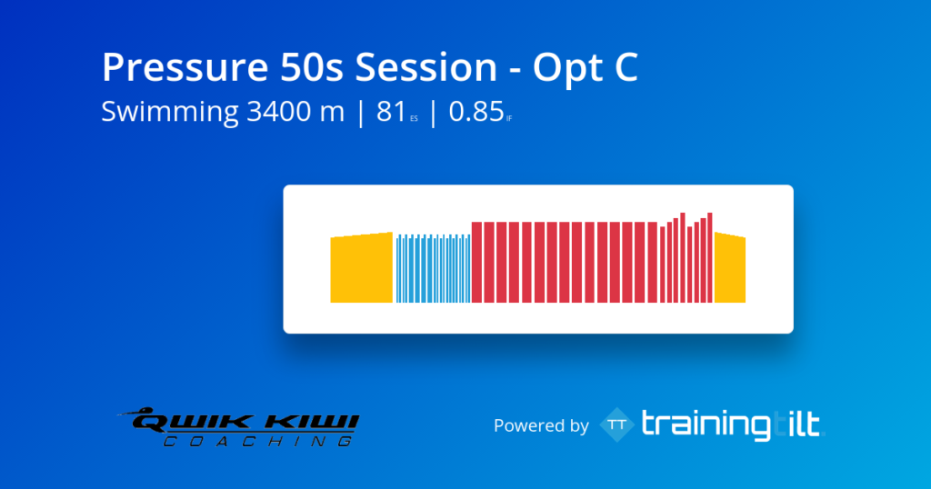 This session is all about applying pressure—on your pace, your breathing, and your ability to stay composed when things start to bite. The shorter 50m reps might look manageable on paper, but with limited recovery they quickly build fatigue and force you to stay switched on. The goal isn’t just speed—it’s control under pressure. Focus on holding your technique, staying relaxed through the stroke, and managing your effort so you can keep delivering quality, rep after rep.