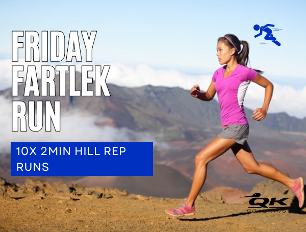 View More Friday Fartlek Run: 10x 2min Hill Rep RunsFriday Fartlek Run – 8x 2min Hill Reps